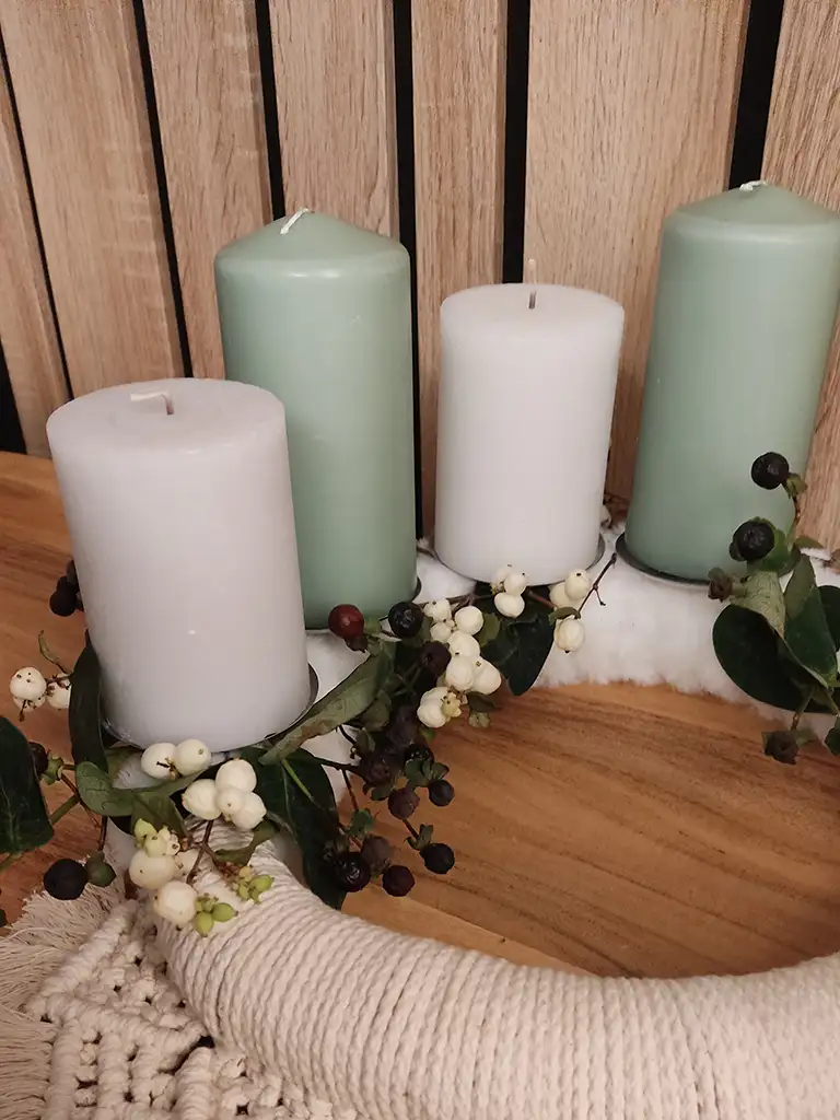 In diesem Workshop gestaltest du deinen ganz persönlichen Makramee-Adventskranz – klassisch mit Kerzen oder modern als dekorativen Wandkranz.